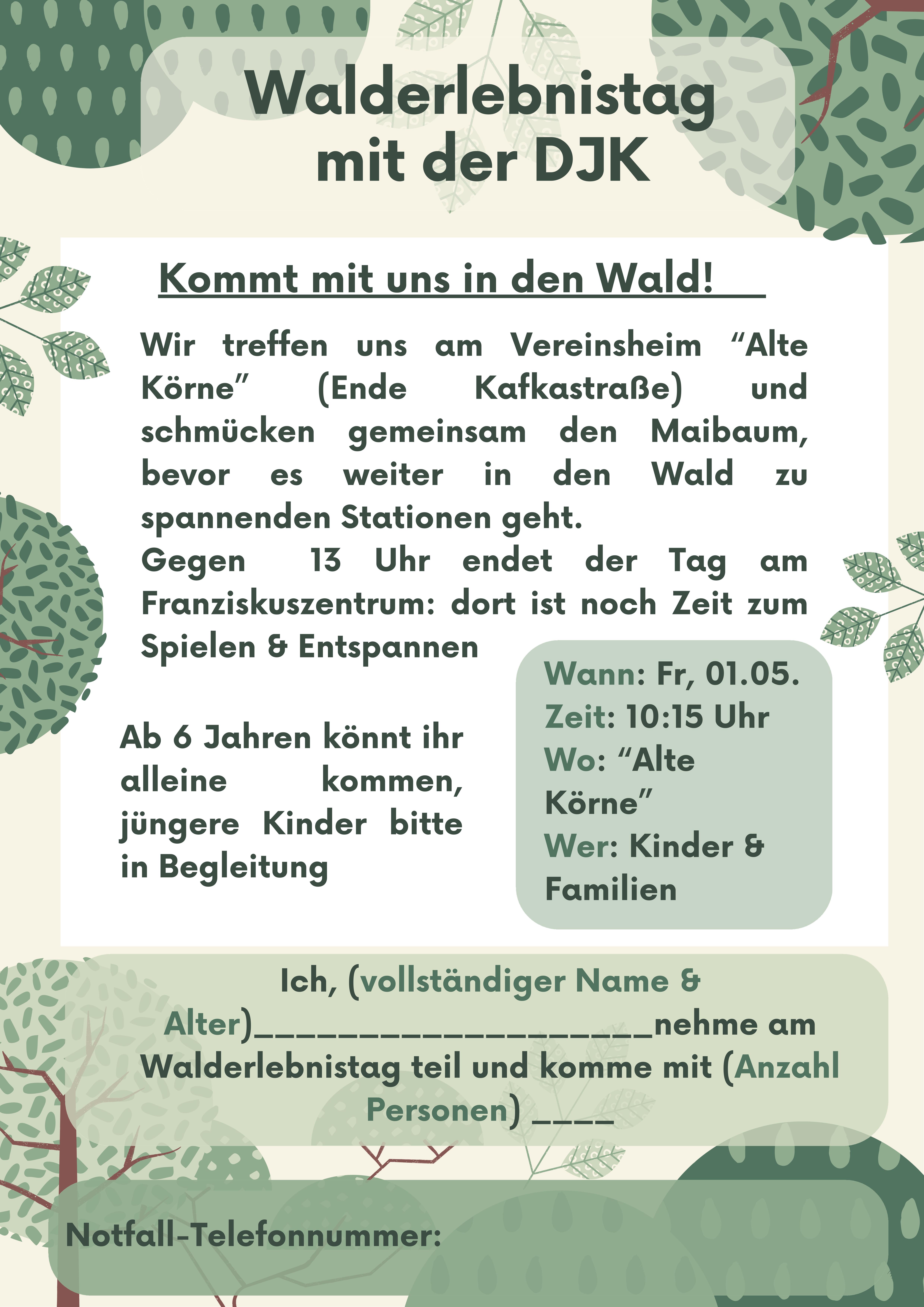 Unser Juka Team beteiligt sich in diesem Jahr wieder mit einem Walderlebnistag an der Maiwanderung.